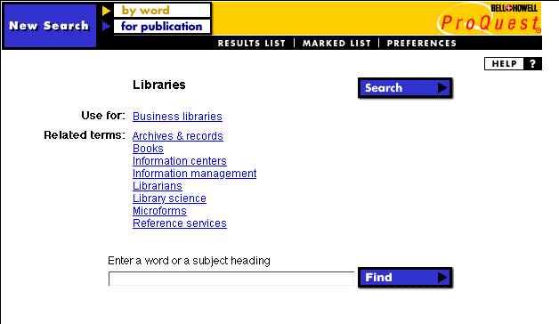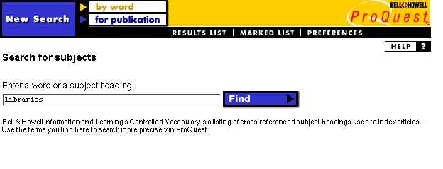 A Subject Search in ProQuest is a search of a list of Subject Headings