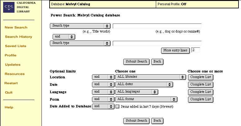Web-based MELVYL: Power Search