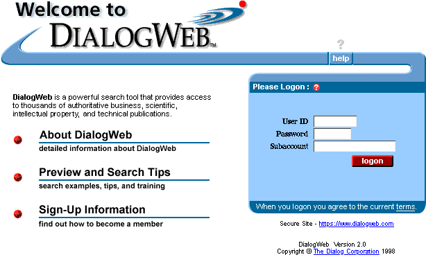 Dialog can be accessed via telnet or the Web, and there are multiple Web interfaces. We are, though, going to focus on DialogWeb and DialogClassic, as these are, generally, the most used and preferred interfaces to the Dialog databases.