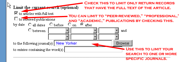 Only articles with all the text stored in the database will be searched. You will only receive full-text articles in your returned records.